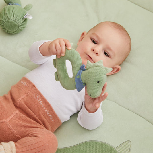 Sterntaler Babyrassel Knuddelsäckchen Dino grün
