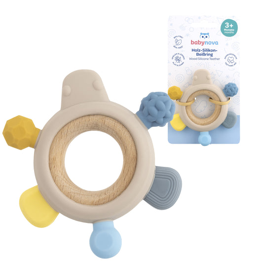 Baby-Nova Holz Beißring Zahnungshilfe mit runden Silikon Beißteilen 3M+