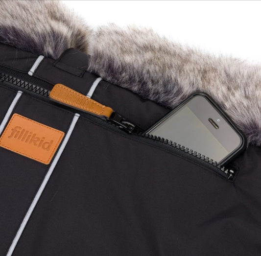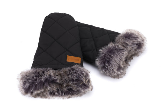 Fillikid Kinderwagen Handwärmer Halifax schwarz mit Kunstpelz Innenraum