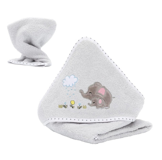 fillikid Badetuch Set Elefanten grau Kapuzenbadetuch mit Waschhandschuh