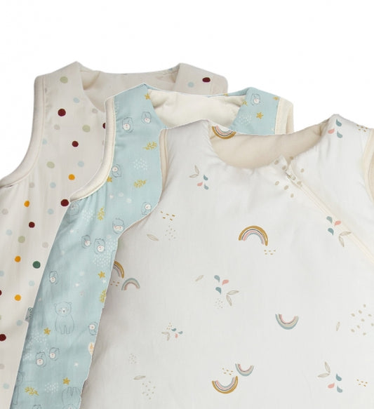 In der Rubrik Baby Bettausstattung finden Sie neben Matratzen und Baby Bettwäsche auch Schlafsäcke mit oder ohne Ärmel und Pucktücher. Der gesündeste Babyschlaf finden in Rückenlage im Baby Schlafsack statt. Sie finden bei den einlagige Sommerschlafsack sowie Übergangszeit Schlafsack oder den gefütterten Winterschlafsack. Besonders pfiffig sind Babyschlafsäcke mit abnehmbaren Ärmeln. Sie lassen sich prima an wechselnde Temperaturen anpassen. Mit einem Innenschlafsack lässt sich ebenfalls mehr Wärme erzeugen. Der TOG Wert zur Bestimmung des Wärmewiederstands gibt eine Auskunft über die Wärmeleistung eines Schlafsacks. Bei Fragen können Sie sich gerne bei uns melden.