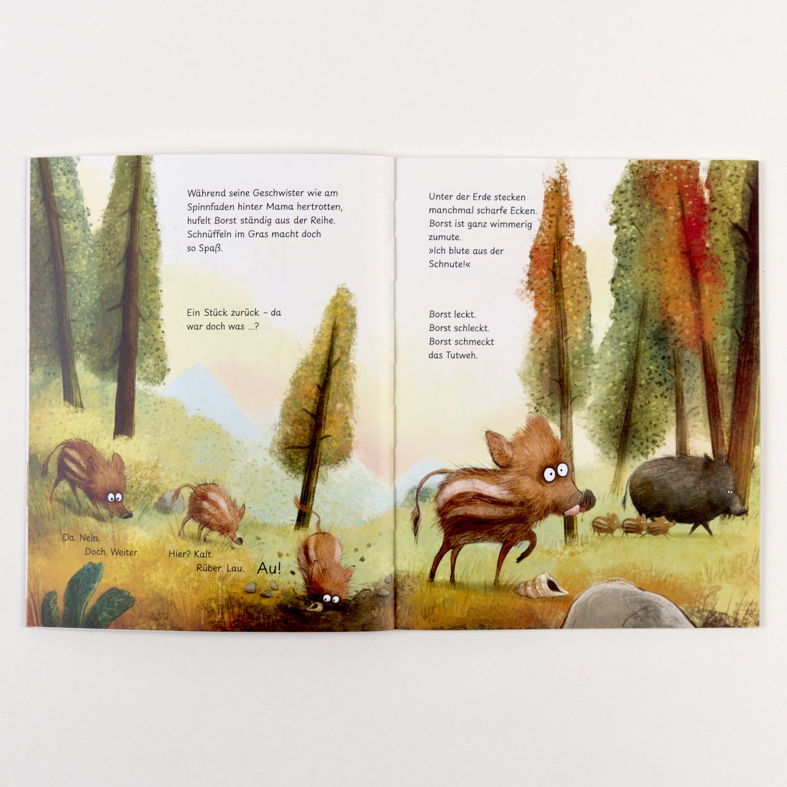 Mitten im Wald findet Frischling Borst eine kleine Meeresschnecke. Für Borst ist klar: Er muss sie zurück nach Hause bringen, ans Wasser! Nur ist der Weg zum Meer ziemlich gefährlich. Doch mit etwas Mut und Unterstützung gelingt es Borst schließlich doch, das Abenteuer zu meistern.