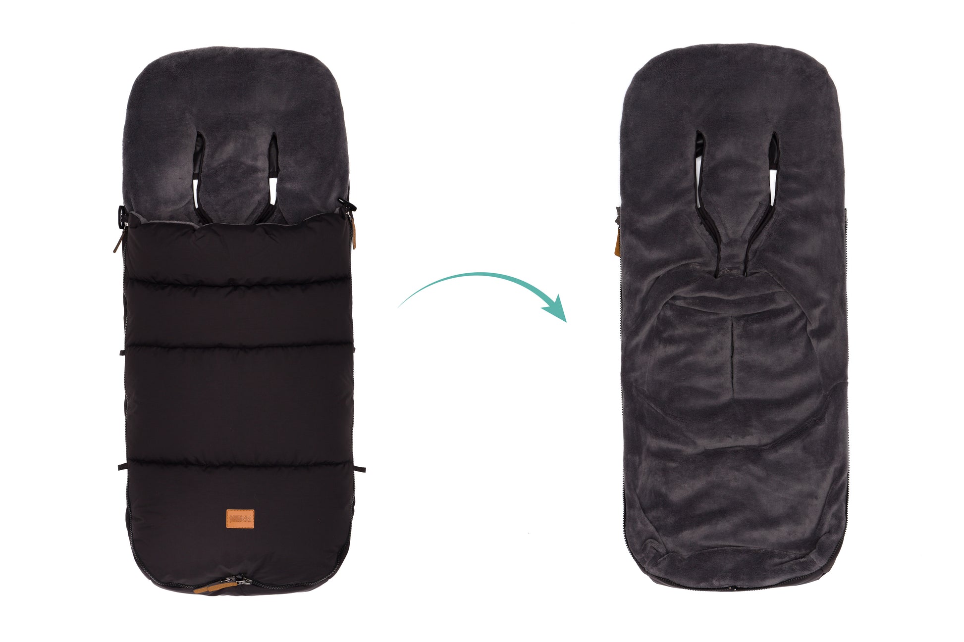 Fillikid Winter Thermo Fußsack Kinley schwarz Wärme und Komfort und macht Kindern den Alltag noch kuscheliger. Das Oberteil des Fußsacks kann vollständig abgenommen werden. So ist der Fußsack auch im Frühjahr noch geeignet. Ob als wärmender Fußsack an kalten Tagen oder gemütliche Sitzauflage, wenn es wärmer wird – der klassisch-moderne Stil des Fußsacks harmoniert optisch perfekt mit nahezu jedem Wagen.