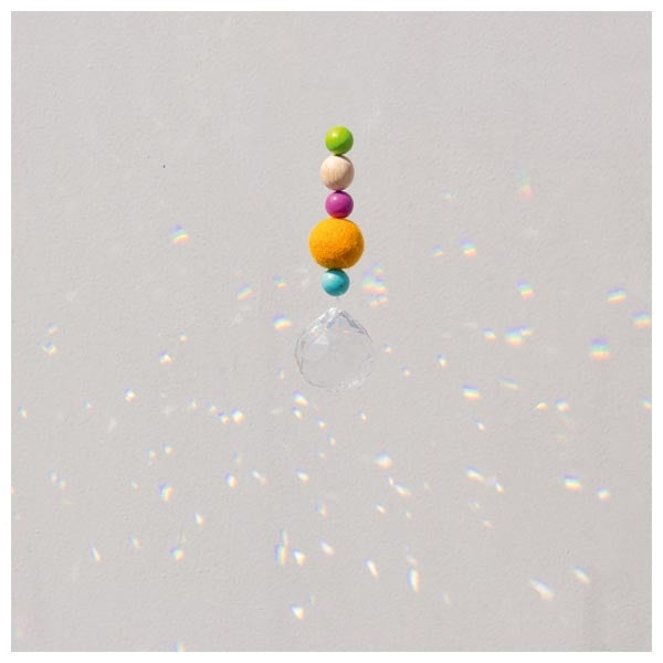 Hänge den Sonnenfänger an einen Ort mit direktem Sonnenlicht, am besten ans Fenster. Sobald die Sonnenstrahlen auf den Kristall treffen, tanzen regenbogenfarbene Lichtpunkte (Spektralfarben) durch deinen Raum. Mit Liebe handgefertigt. Die Kugeln bestehen aus hochwertigem Wollfilz und machen jeden Sonnenfänger zu einem Unikat.