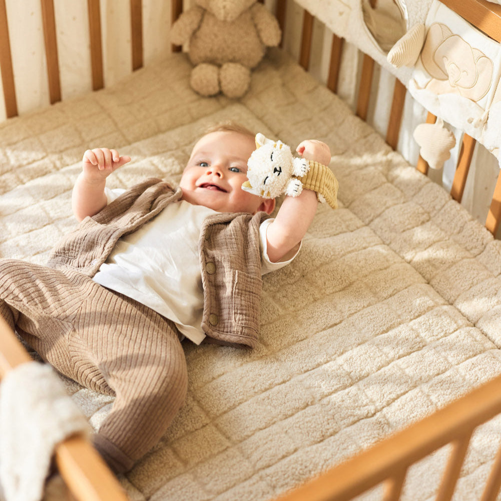 Diese süße Handgelenk-Rassel Katerchen ist das perfekte Spielzeug für dein Baby. Die Bouclé-Tierchen hat niedliche gelbe Streifen und macht bei jeder Bewegung ein fröhliches Geräusch. Das Armband lässt sich leicht am Handgelenk Ihres Babys befestigen. So ist das neue Lieblingsspielzeug immer dabei!