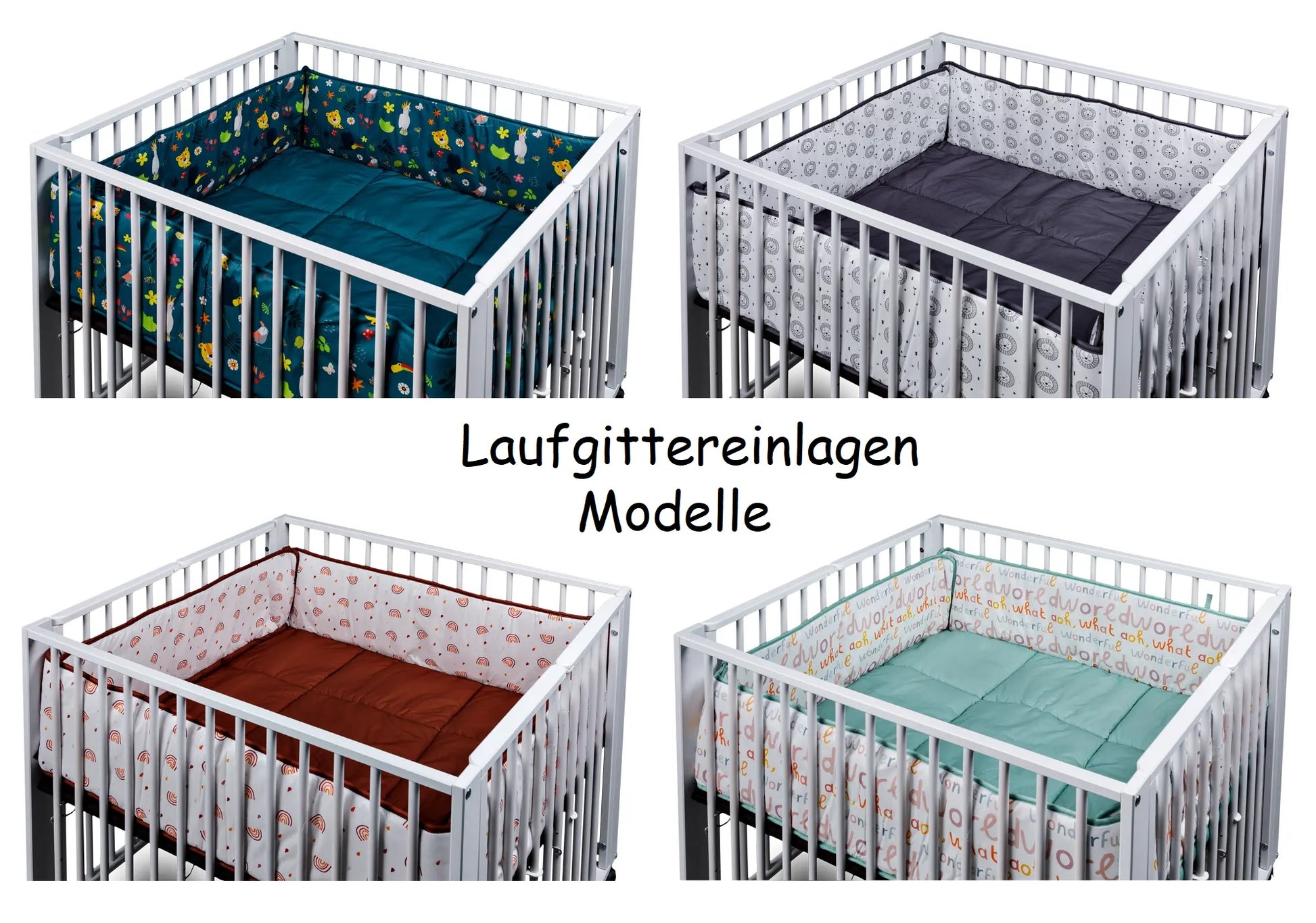 Das optionale Polster kann ebenfalls ausgewählt werden. Die kuschelige Einlage aus Baumwolle ist mit Polyester gefüllt und wird mit kleinen Bindebändchen an den Gitterstäben befestigt. Nichts verrutscht und sollte dabei mal ein kleines „Unglück“ passieren, kann die Einlage bei 30° C in die Waschmaschine. Wählbar in 4 verschiedenen Designs.
