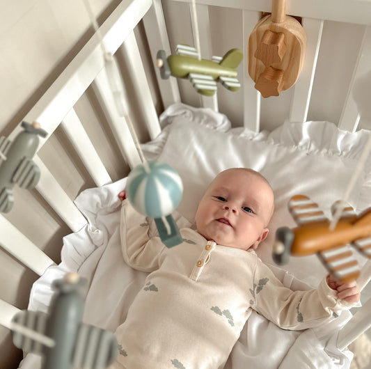 Bitte beachten Sie, das Mobile immer außer Reichweite aufzuhängen, damit sich das Baby nicht verletzt.