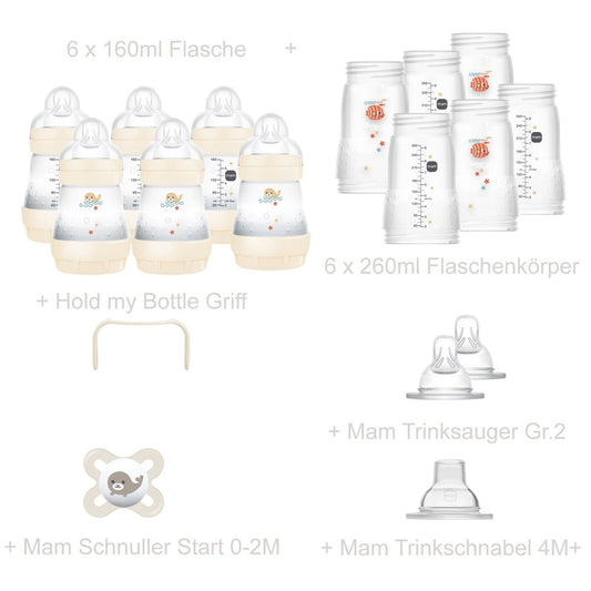 MAM Erstlingsset Babyflaschen & Flaschenbox Baby Geschenkset Weiß Natur 7-tlg