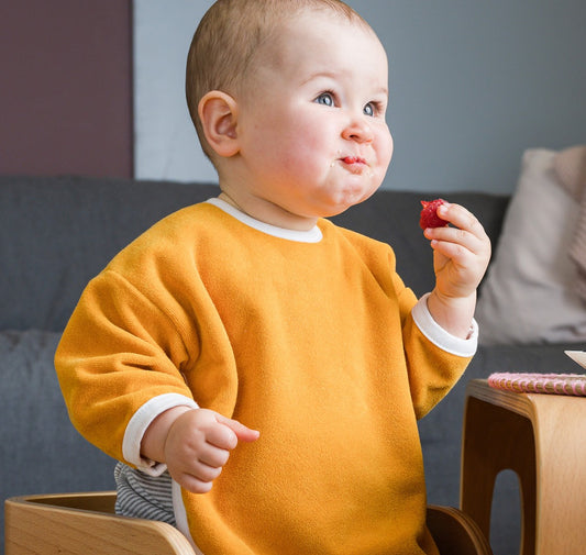 Lätzchen und Spucktücher bzw. Mulltücher kann man in den ersten Monaten kaum zu viele besitzen - da täglich mehrere im Umlauf sind. Ein Spucktuch ist ein saugfähiges Tuch - oft eine Baumwoll Mullwindel, das man sich nach dem Stillen oder Fläschchen geben über die Schulter legt, wenn das Baby sein Bäuerchen macht. Sobald die Beikostzeit beginnt, benötigt man zusätzlich einige saugfähige Lätzchen. Es gibt sie als Bindelätzchen, Schlupflätzchen oder Klettlätzchen. Aus Frottee und damit saugfähig. Nützlich sind auch abwaschbare Silikonlätzchen oder Textillätzchen mit Folienunterlage, um die darunterliegende Kleidung zu schützen. Ärmellätzchen sind besonders nützlich um möglichst sauber zu bleiben. Das Wichstigste bleibt aber, den Spaß am Essen zu behalten. Damit Baby die Nahring und das Essen mit allen Sinnen erfahren kann! Wir wünschen daher viel Spaß beim Entdecken, Schmecken und Kleckern.