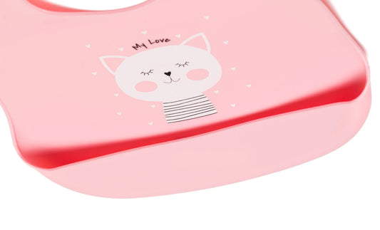 fillikid 2er Silikonlätzchen mit Auffang - Katze rosa & Wal grau