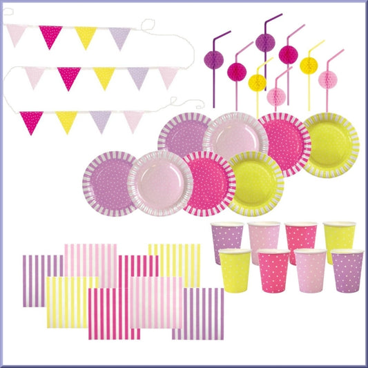 Jabadabado Kindergeburtstag Partyset für Mädchen / Rosa Violett
