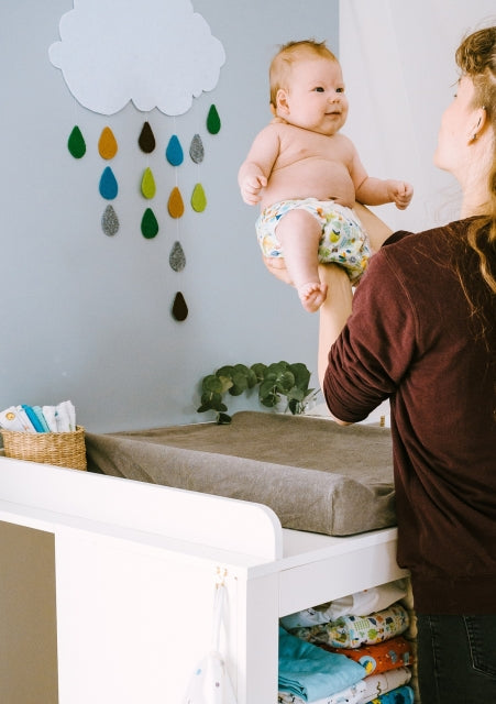 Am Wickeltisch wird in Baby's ersten Jahren so viel Zeit verbracht - da lohnt es sich, diesen Wickelplatz so praktisch und schön wir möglich zu gestalten. Mit einer weichen und abwaschbaren Wickelauflage haben Sie das erste Must Have. Damit es nicht zu kalt ist, sind Heizstrahler und ein Frottee Bezug ideal. Um das Baby abzulenken ist ein buntes Mobile über dem Wickeltisch eine prima Idee. Sie sollten zusätzlich die Windeln, Feuchttücher, Wechselkleidung und den Windeleimer direkt neben sich griffbereit haben.